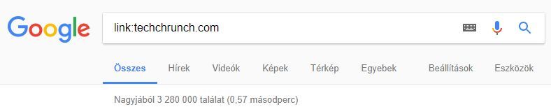 ha a link: szó írja be egy URL elé a keresőbe, úgy a Google megmutatja Önnek, melyek azok az oldalak, amelyek erre mutatnak. Ez különösen hasznos lehet a keresőoptimalizálás szempontjából, hiszen segítségével könnyen megtalálhatók a visszamutató linkek.